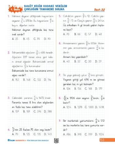 4. Ünite ÇOKLUĞUN TAMAMINI BULMA Test-32