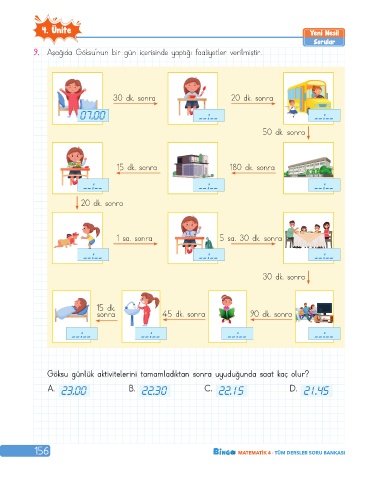 9. Aşağıda Göksu’nun bir gün içerisinde yaptığı faaliyetler verilmiştir.