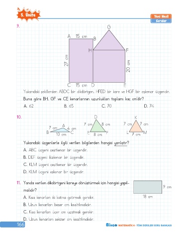 166 MATEMATİK 4 · TÜM DERSLER SORU BANKASI