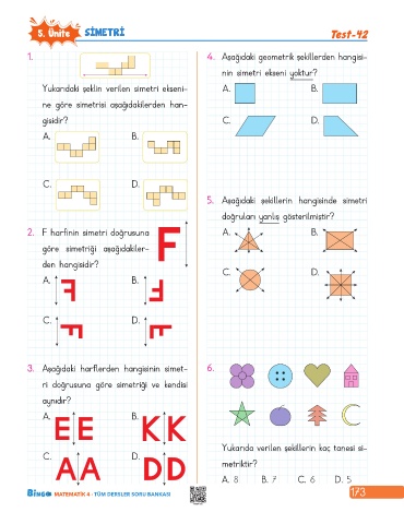 3. Aşağıdaki harflerden hangisinin simet- 6.