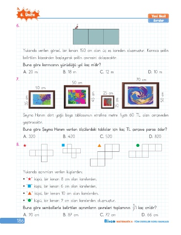 Buna göre Şeyma Han›m verilen ölçülerdeki tablolar için kaç TL çerçeve paras› öder?