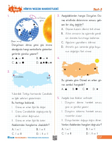 1. Ünite DÜNYA’MIZIN HAREKETLERİ Test-3