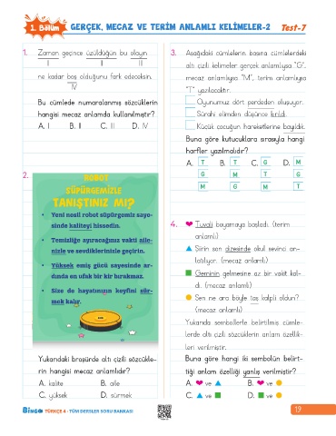1. Bölüm HARF - HECE - SÖZÜCÜKTERİM ANLAMLI KELİMELER-2 Test-7