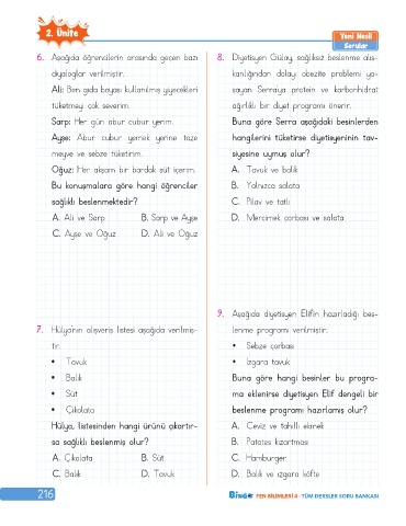 6. Aşağıda öğrencilerin arasında geçen bazı 8. Diyetisyen Gülay, sağlıksız beslenme alış-