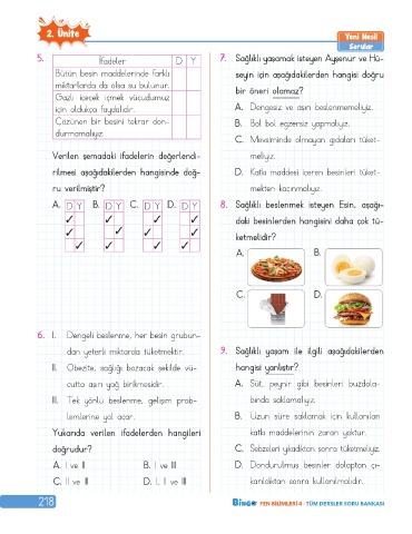5. İfadeler D Y 7. Sağlıklı yaşamak isteyen Ayşenur ve Hü-