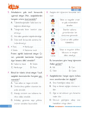 5. Arkadaşlarını gıda israfı konusunda 8. Aşağıda dört öğrencinin konuşması veril-