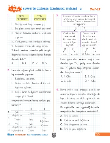 3. Ünite KUVVETİN CİSİMLER ÜZERİNDEKİ ETKİLERİ - 2 Test-12