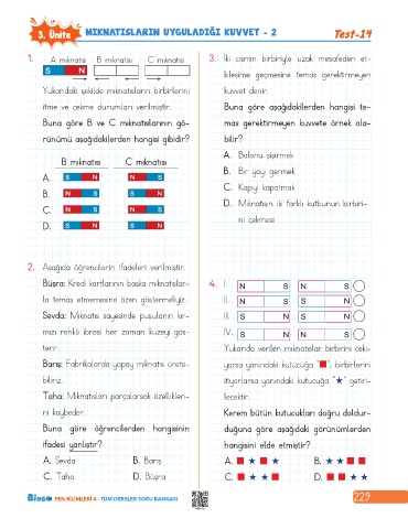 3. Ünite MIKNATISLARIN UYGULADIĞI KUVVET - 2 Test-14