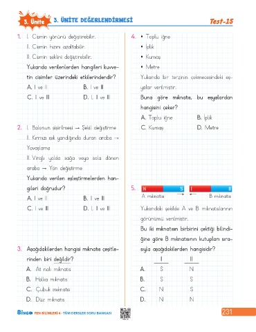 3. Ünite 3. ÜNİTE DEĞERLENDİRMESİ Test-15