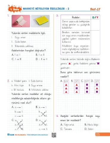 4. Ünite MADDEYİ NİTELEYEN ÖZELLİKLER - 2 Test-17