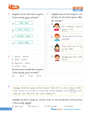 22 TÜRKÇE 4 · TÜM DERSLER SORU BANKASI