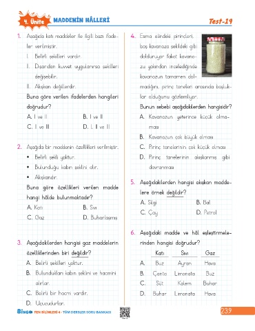 4. Ünite MADDENİN HÂLLERİ Test-19