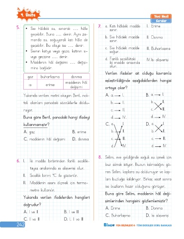 242 FEN BİLİMLERİ 4 · TÜM DERSLER SORU BANKASI