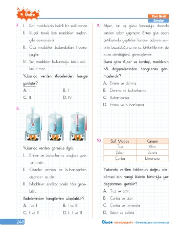 7. I. Katı maddelerin belirli bir şekli vardır. 9. Alper, bir kış günü kardeşiyle dışarıda