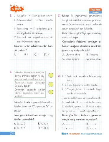 5. I. Megafon → Sesin şiddetini artırır. 7. Mesut: İç organlarımızı görüntülemek