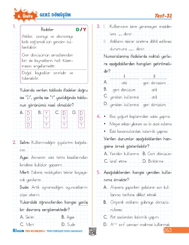 6. Ünite GERİ DÖNÜŞÜM Test-31