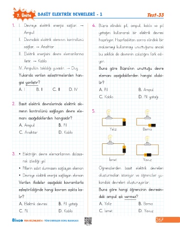 7. Ünite BASİT ELEKTRİK DEVRELERİ - 1 Test-33