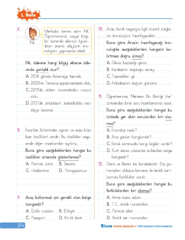 274 SOSYAL BİLGİLER 4 · TÜM DERSLER SORU BANKASI