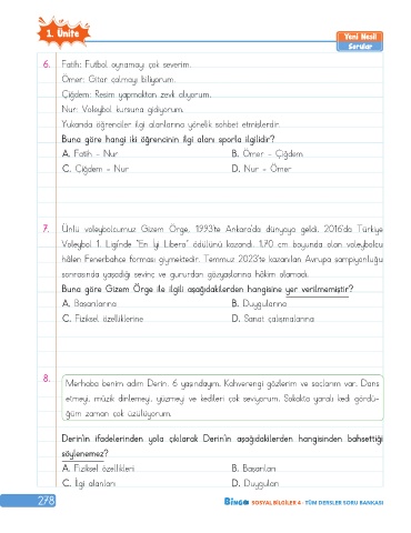 278 SOSYAL BİLGİLER 4 · TÜM DERSLER SORU BANKASI
