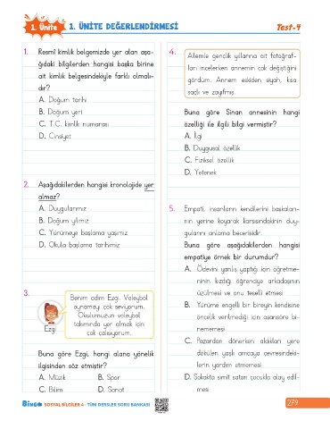 1. Ünite 1. ÜNİTE DEĞERLENDİRMESİ Test-4