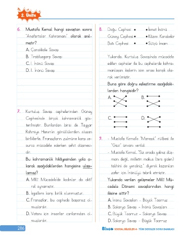 286 SOSYAL BİLGİLER 4 · TÜM DERSLER SORU BANKASI