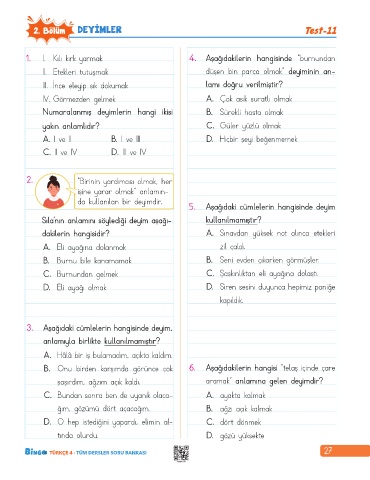 2. Bölüm DEYİMLER Test