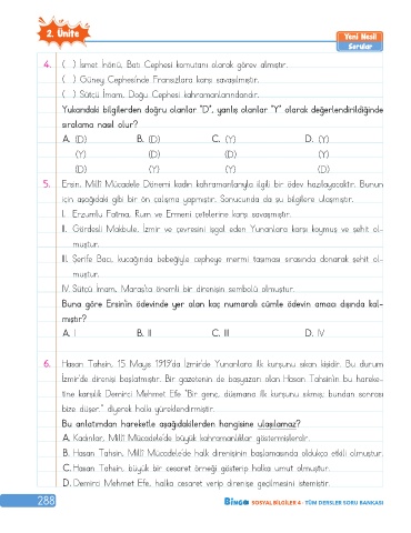 288 SOSYAL BİLGİLER 4 · TÜM DERSLER SORU BANKASI