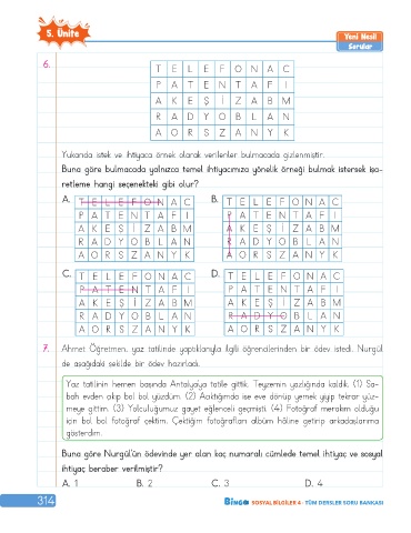 314 SOSYAL BİLGİLER 4 · TÜM DERSLER SORU BANKASI