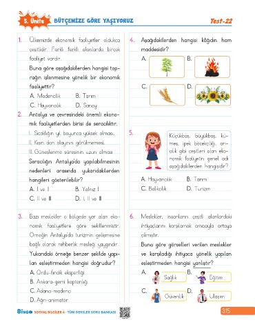 5. Ünite BÜTÇEMİZE GÖRE YAŞIYORUZ Test-22