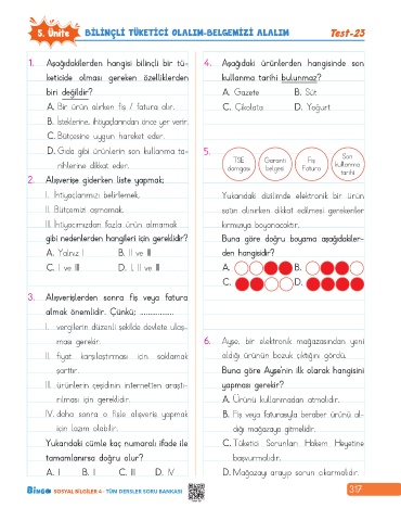 5. Ünite BİLİNÇLİ TÜKETİCİ OLALIM-BELGEMİZİ ALALIM Test-23