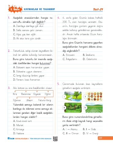 5. Ünite KAYNAKLAR VE TASARRUF Test-24