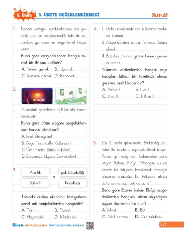 5. Ünite 5. ÜNİTE DEĞERLENDİRMESİ Test-25