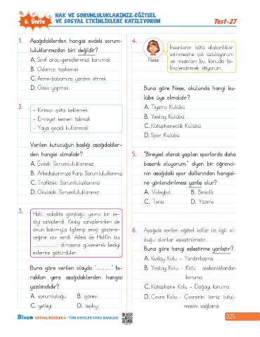 6. Ünite VE SOSYAL ETKİNLİKLERE KATILIYORUM Test-27