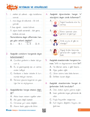 1. I. etekleri zil çalmak - ağzı kulaklarına 4. Aşağıdaki öğrencilerden hangisi “el”