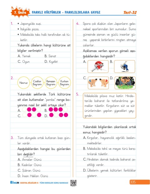 7. Ünite FARKLI KÜLTÜRLER - FARKLILIKLARA SAYGI Test-32