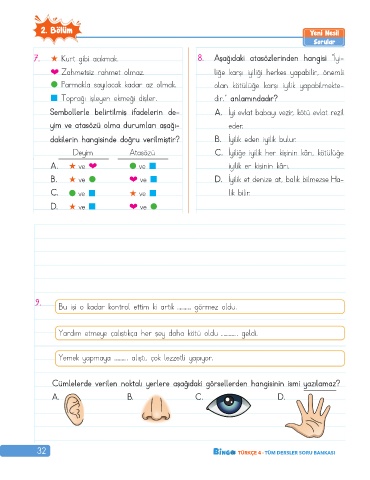 7. ★ Kurt gibi acıkmak. 8. Aşağıdaki atasözlerinden hangisi “İyi-