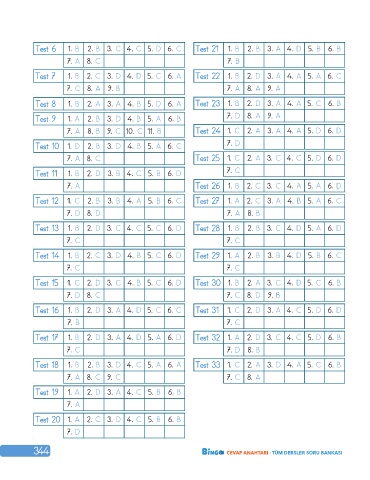 344 CEVAP ANAHTARI · TÜM DERSLER SORU BANKASI
