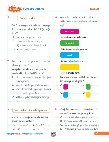 2. Bölüm CÜMLEDE ANLAM Test-16