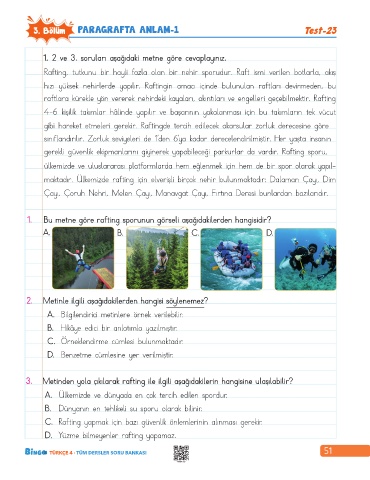 3. Metinden yola çıkılarak rafting ile ilgili aşağıdakilerin hangisine ulaşılabilir?