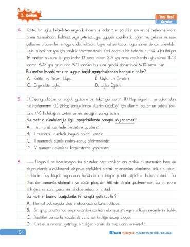 54 TÜRKÇE 4 · TÜM DERSLER SORU BANKASI