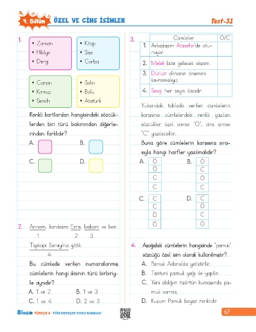 4. Bölüm ÖZEL VE CİNS İSİMLER Test-31
