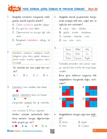 4. Bölüm TEKİL İSİMLER, ÇOĞUL İSİMLER VE TOPLULUK İSİMLERİ Test-32