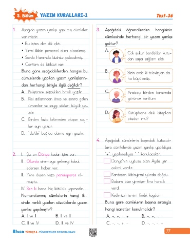 5. Bölüm YAZIM KURALLARI-1 Test-36