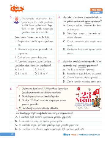 78 TÜRKÇE 4 · TÜM DERSLER SORU BANKASI