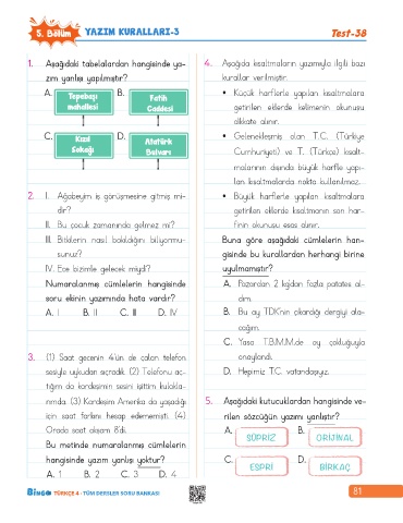 5. Bölüm YAZIM KURALLARI-3 Test-38