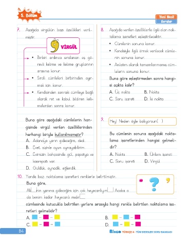 7. Aşağıda virgülün bazı özellikleri veril- 8. Aşağıda verilen özelliklerle ilgili olan nok-