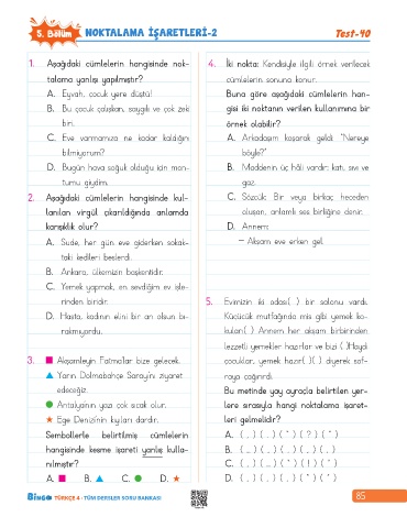 1. Aşağıdaki cümlelerin hangisinde nok- 4. İki nokta: Kendisiyle ilgili örnek verilecek