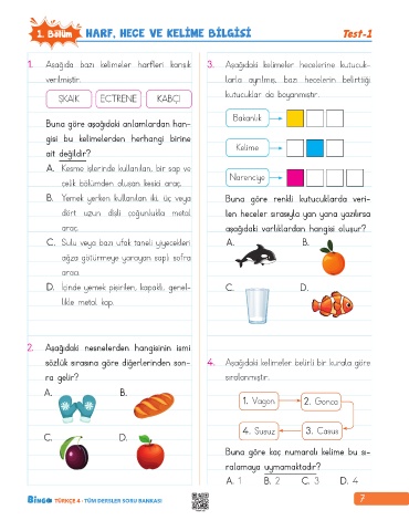 1. Bölüm HARF, HECE VE KELİME BİLGİSİ Test-1