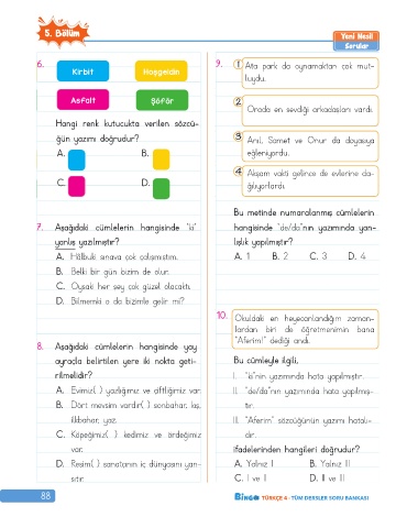 88 TÜRKÇE 4 · TÜM DERSLER SORU BANKASI