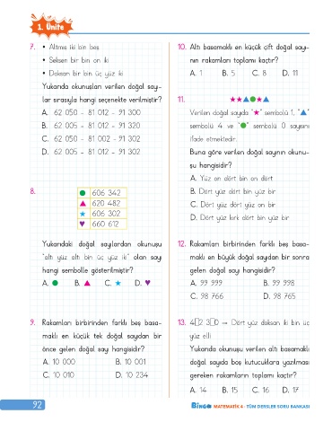 7. • Altmış iki bin beş 10. Altı basamaklı en küçük çift doğal sayı-